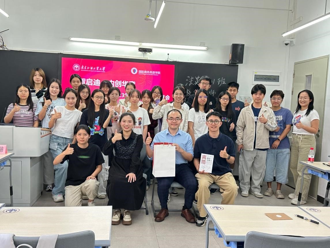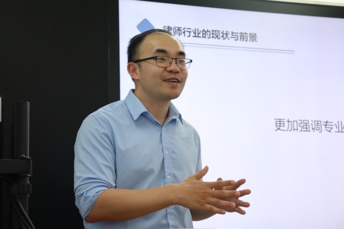 随后,校外导师陈晖律师从法英系学生的职业生涯规划、律师行业的现状与前景、法英学生进入律师行业的路径等方面,深入分析了法英2301班的同学的职业前景与道路,同时建议同学们在校期间多参加学生工作,借助学生工作平台锻炼人际交往能力、办公能力等技能,为实现未来高质量就业做准备。
