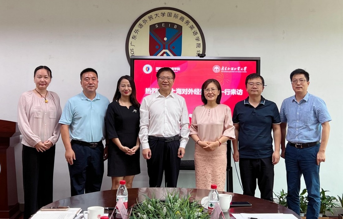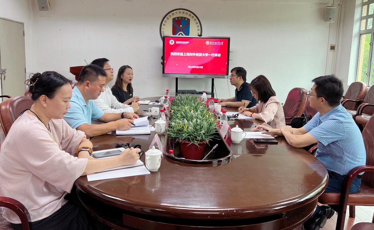 9月23日上午,上海对外经贸大学国际商务外语学院院长张蔚磊、副院长雷春林、郭义一行来永利官网调研交流。yl6809永利官网院长胡春雨,副院长杨文慧、汪谓超、陈潇潇参加座谈。