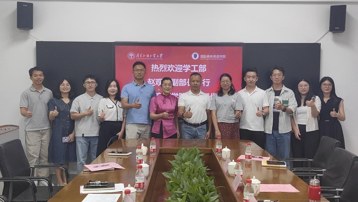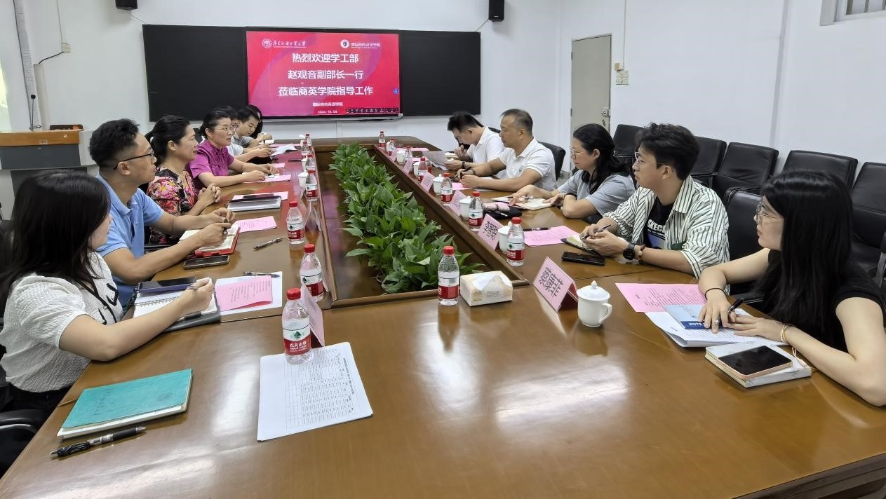 会议伊始,苏冬燕书记对学工部各科室领导老师一行的到访表示热烈欢迎,并衷心感谢学工部一直以来对商英工作的重视支持和关怀指导,随后简要介绍了学院的最新情况以及在专业调整和招生工作中取得的积极成效。苏冬燕表示,学院将深入学习贯彻党的二十届三中全会精神,全面深化改革,认真落实立德树人根本任务,力求在复合型创新型国际化人才培养、学生特色品牌打造、思政工作有效开展等方面有更深入思考和更多优秀成果,推动学院教育事业高质量发展,在学校冲一流建设中做出商英贡献。
