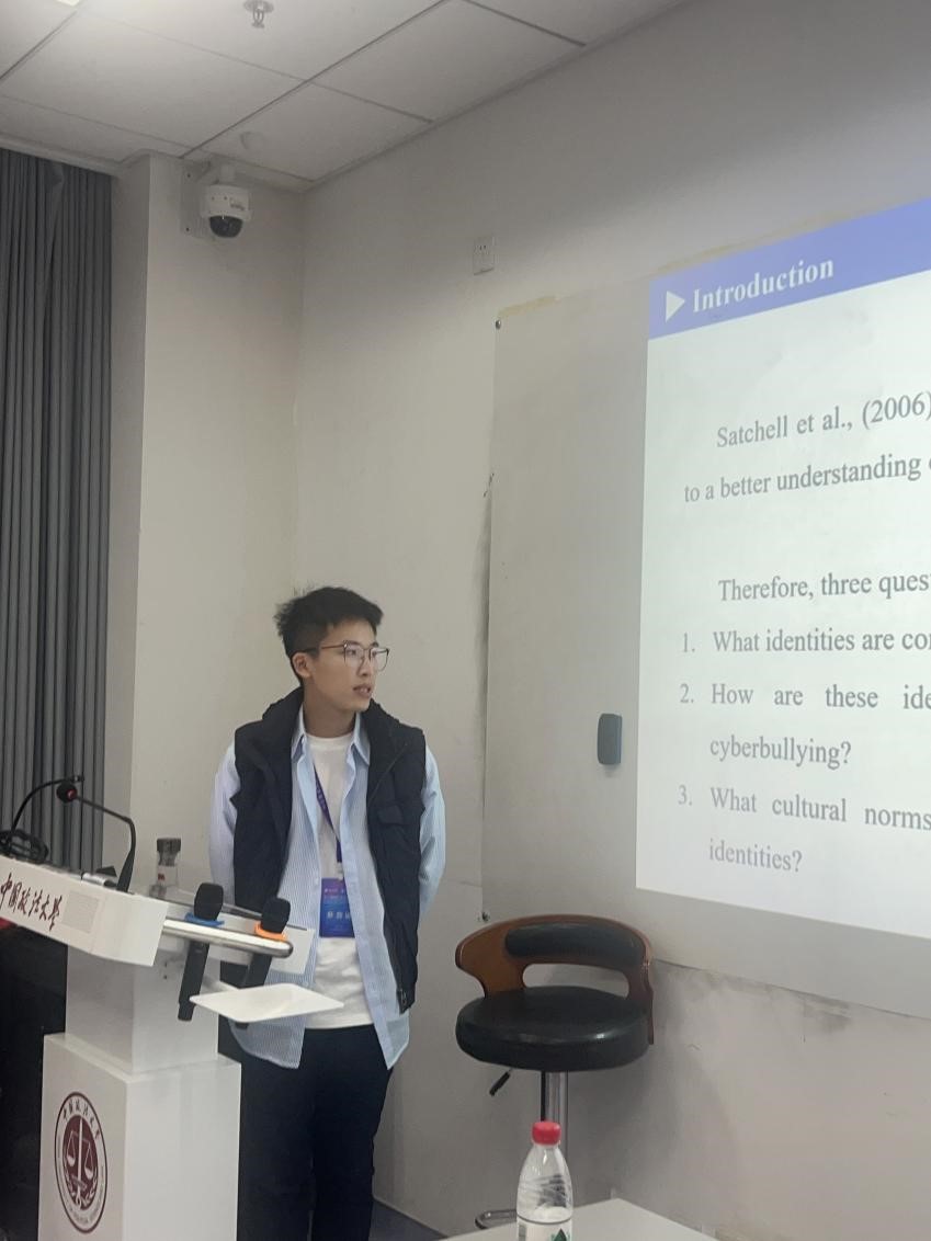 张锷浩以《“What a ‘Fairy’!”: A Corpus-Based Study of Other-Constructed Victim Identities in a Chinese Cyberbullying Case on Sina Weibo》为选题,着眼于身份认同在自我建构与他者建构过程中的互动性与动态性,采用了Bucholtz和Hall的身份原则,以语料库为基础,以新浪微博为场域,研究网络欺凌事件中他人建构的受害者身份,揭示了网民利用标签、暗示、立场和风格标记等语言工具为受害者建构负面身份,结合传统文化和社会语境发动语言攻击的现象,体现了网络欺凌中的身份建构是互动、文化和社会因素的相互作用,旨在阐明这些动态因素,帮助识别潜在的网络欺凌并减轻其对受害者的影响。
