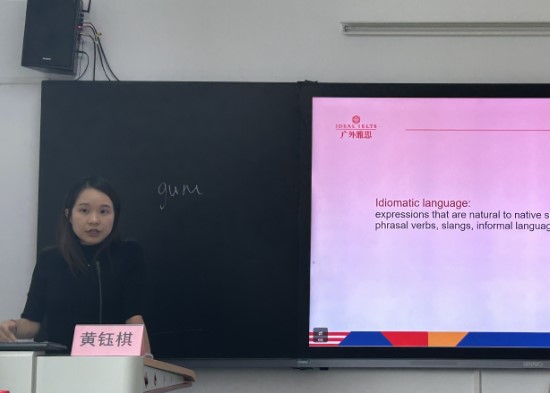 黄钰棋老师,是广外雅思口语组组长、口语组资深讲师,教学经验丰富,多次获得广外优秀教学奖。黄钰棋老师先宏观介绍雅思近年来的命题规律和考察方向,并重点分享了雅思口语备考技巧。她提醒同学们规避网上的错误示例,多做真题、不断提升个人水平。