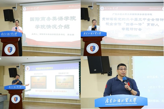 苏冬燕向在场嘉宾介绍了学院最新的发展情况,表示yl6809永利官网始终牢记为党育人、为国育才的初心使命,在重塑学院发展战略、加强人才队伍建设、创新人才培养模式、重构人才培养目标、提升国际化办学水平和加强校企合作等方面积极担当作为。杜焕君介绍了学院学生的基本情况、就业情况,并解读了“四导一体”人才培养模式,即通过整合辅导员、班级导师、校外导师和朋辈导师多方教育资源,形成教育合力,发挥“四导一体”领航作用,促进人才培养。汪谓超介绍了学院的专业建设情况,指出学院积极应对数字化发展浪潮,转变人才培养模式,对专业设置、教学大纲等方面进行调整,在今年的招生工作中取得可喜成绩。班级导师代表王伟强从一线教师的视角,分享了在授课中利用AI赋能商务英语读写教学的动因和方法。