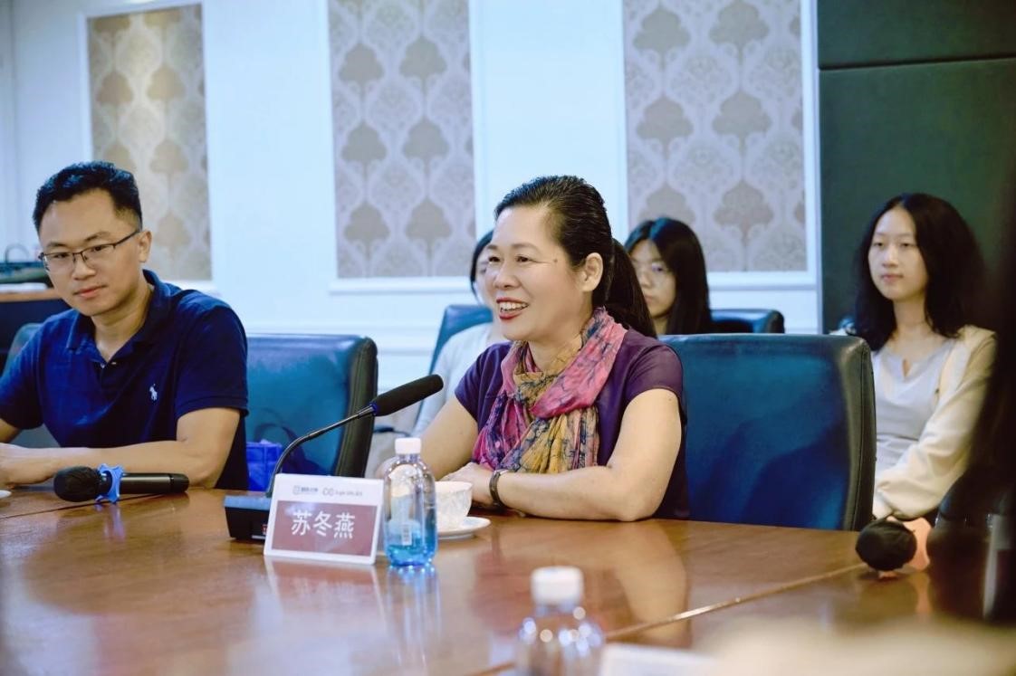 在座谈会中,罗慧枰介绍了广东盈浩的发展历程。她表示,广东盈浩作为广外校友企业,多年来与母校建立了深厚的校企合作关系:罗慧枰担任学院的客座教授、学院校友理事会副会长,还担任了2023级班级导师,给师弟师妹们提供更多指导,广东盈浩是学院商务谈判课程的移动课堂。与此同时,广外则连续21年为广东盈浩输送优秀的人才,广东盈浩的首批校招生全部来自广外,在盈浩,广外毕业生的占比在员工和管理层中均居首位。她期待通过此次共建实践教学基地为契机,推进校企合作高质量发展。
