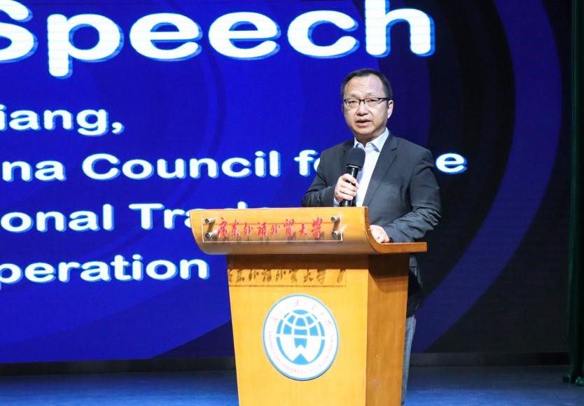 中国对外贸易经济合作企业协会副会长郑樑随后致辞。他对本次赛事的主题给予了高度评价并向此次赛事的命题专家表示了由衷的敬意,感谢他们为推动商务英语的发展所做出的杰出贡献。他强调,商务英语专业的学生是联接中外经济交流的桥梁,是推动全球商务合作的重要力量。他对即将在赛场上展现风采的学生们寄予了厚望,期待他们能够以出色的表现,为商务英语的实践与发展注入新的活力。