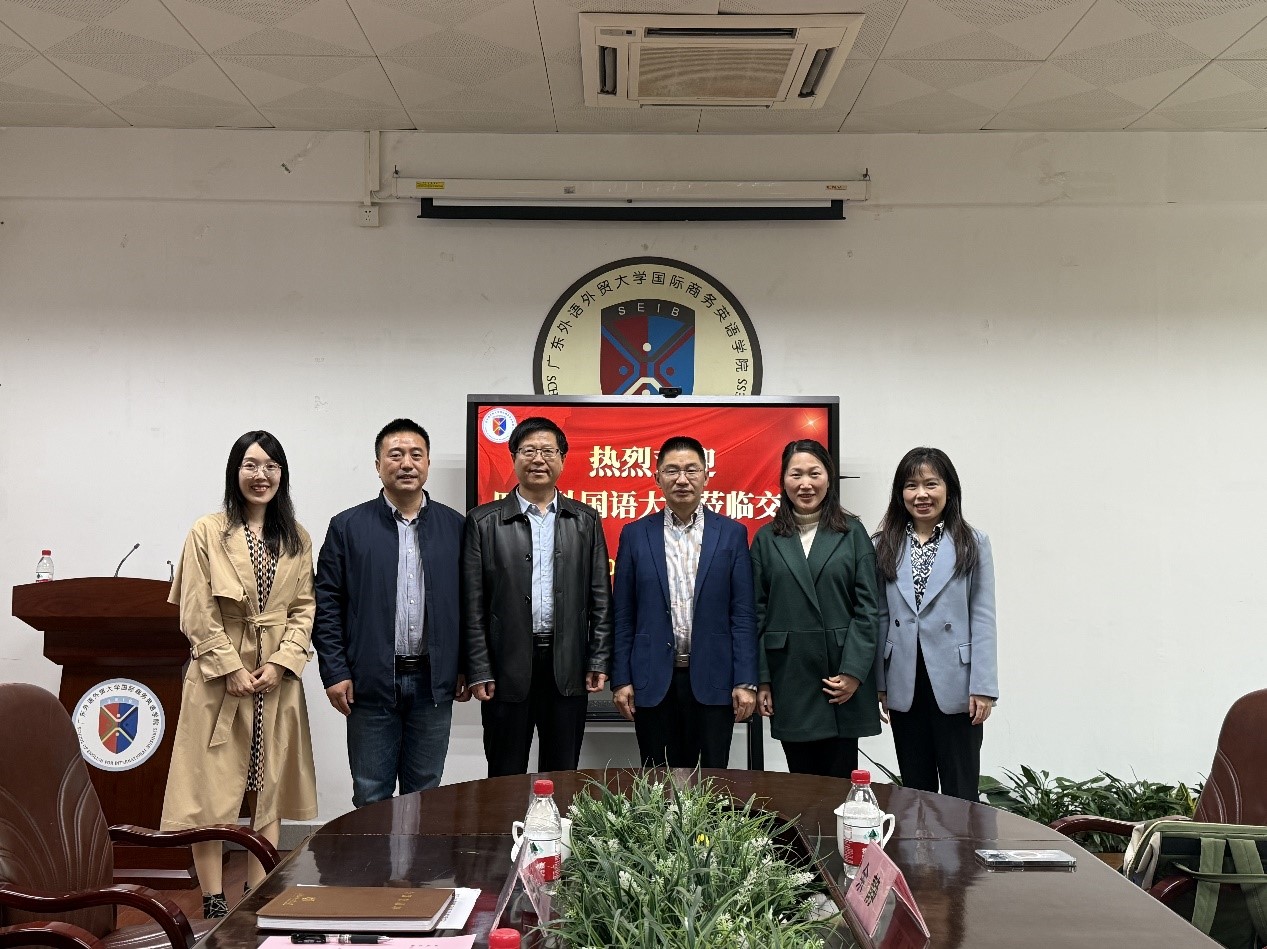 12月12日下午,四川外国语大学商务英语学院院长胡文飞、商务英语系主任樊秋涛、商务英语专业发展中心主任余静一行来永利官网调研交流。yl6809永利官网院长胡春雨、副院长汪谓超、经贸英语系主任何宇菲参加座谈。