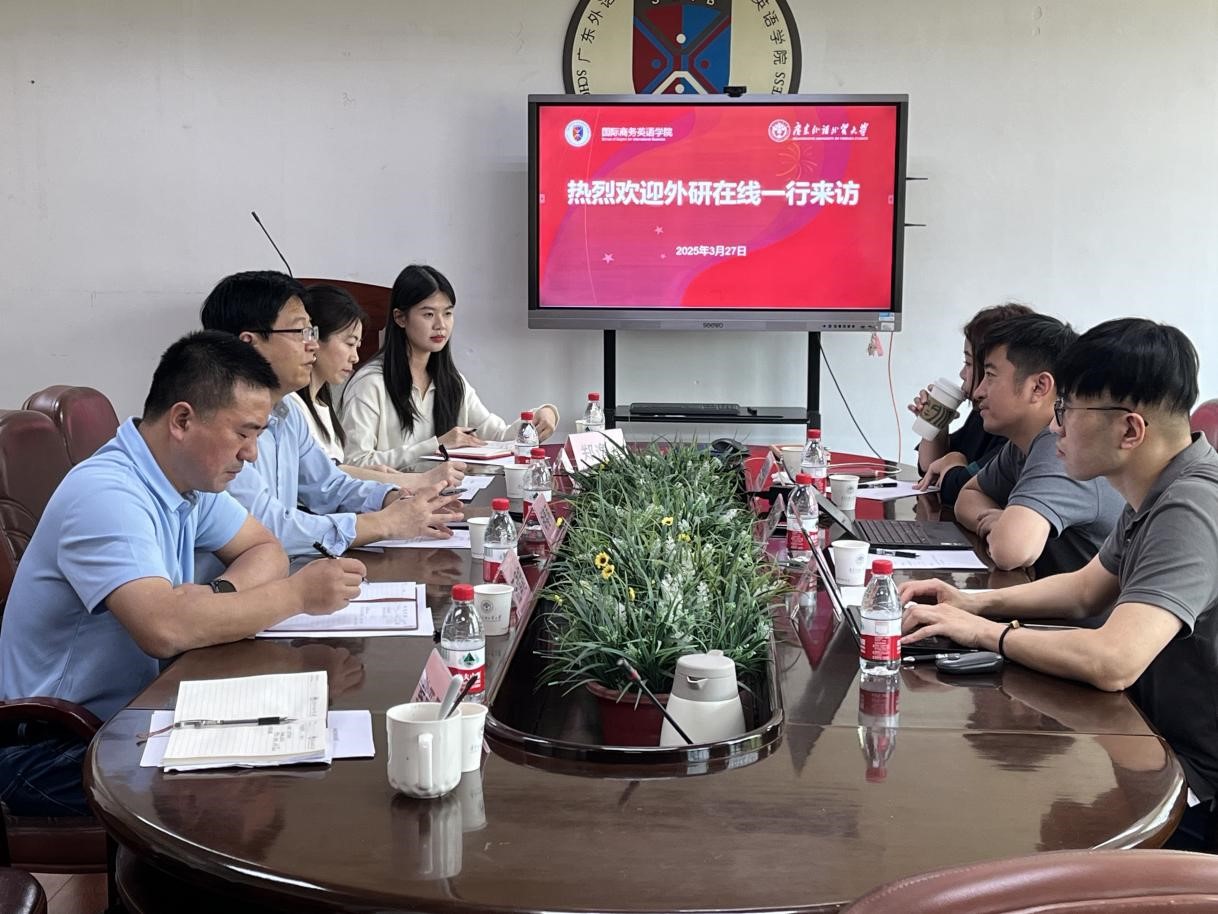 3月27日下午,北京外研在线数据科技有限公司(以下简称“外研在线”)总经理商其坤、产教融合部总监王磊以及广东地区市场经理龙垚垚一行来访永利官网,就如何深化合作、协同培养适应时代需求的高素质人才进行了深入探讨。yl6809永利官网院长胡春雨、副院长汪谓超、英语教学部系主任严小庆等人员参与座谈。
