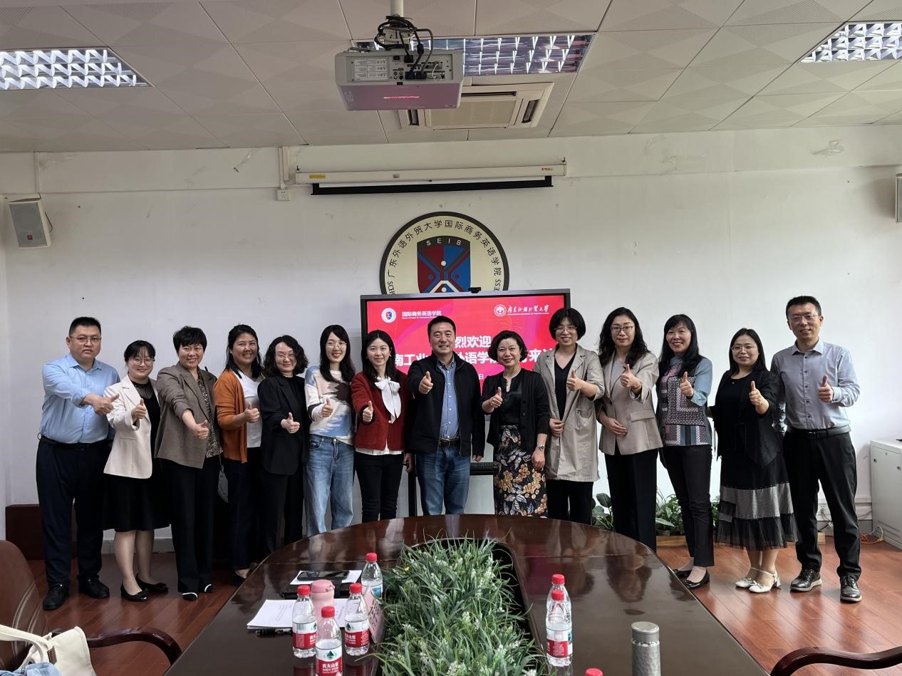 4 月 8 日上午,河南工业大学外语学院副院长葛丽萍、各位系主任、专任教师一行 9 人来永利官网开展调研交流活动。yl6809永利官网副院长汪谓超、院长助理乐思伟,以及经贸英语系系主任何宇菲、英语教学部系主任严小庆、副主任陈丽丹热情接待了来访嘉宾。座谈会在广外三教 318 会议室有序开展。