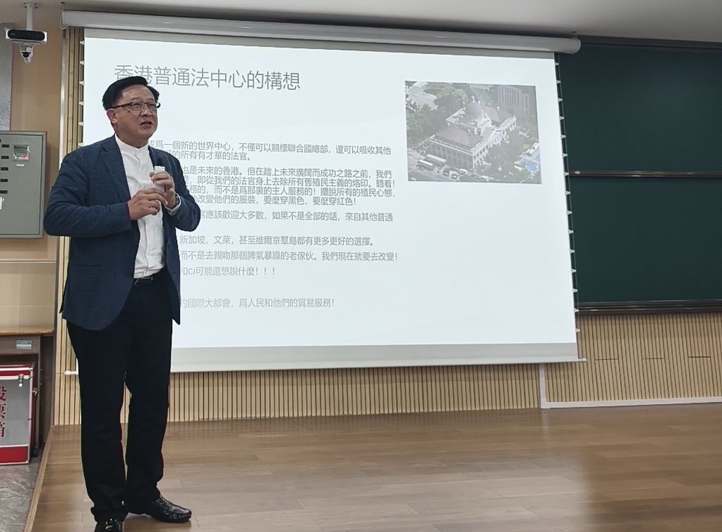 此外,何君尧还分享了自己作为政协委员的履职经历。他提到,自己曾提交涉及多个领域的提案,如在香港北部都会区建立中国传统文化艺术博物馆暨国际交易中心、推动涉外法律服务人才培训等。他强调,民间软实力在国际舞台上发挥着重要作用,应培养具有国际视野和跨文化交流能力的人才,讲好中国故事,提升中国在国际机构中的影响力。其观点得到了众多师生的肯定与赞扬,学生们在讨论交流环节纷纷就讲座内容以及自身关注主题向何君尧请教,现场气氛十分热烈。