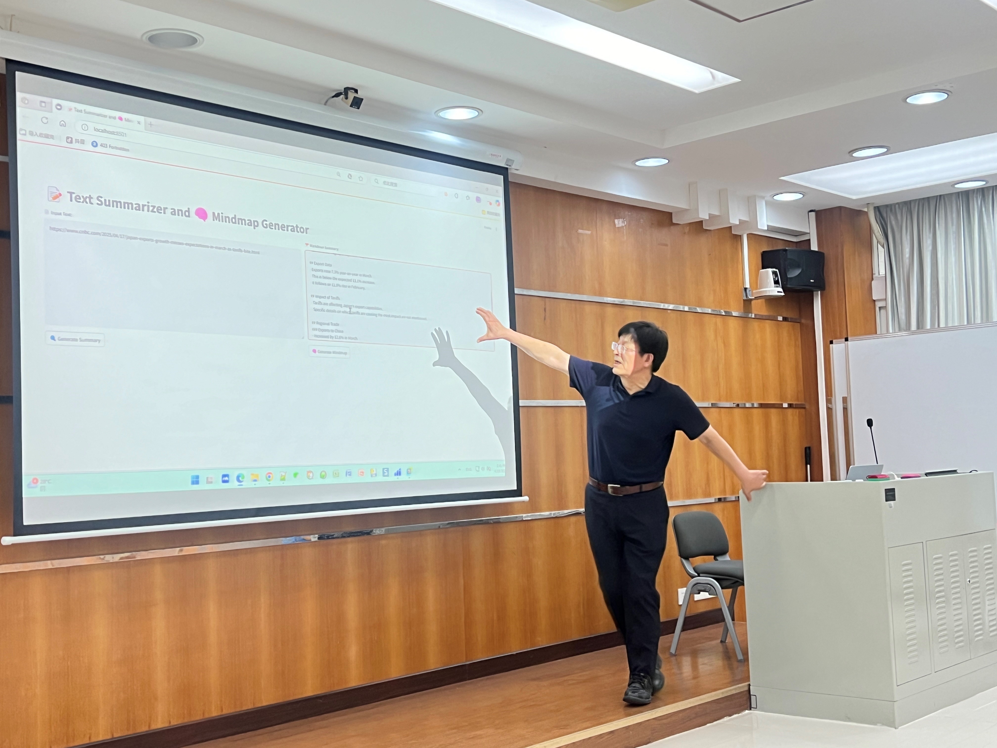 讲座伊始,梁茂成教授详细介绍了大语言模型的原理,对比了GPT与双向预训练模型的差异等,强调GPT这类单向模型在后文预测和内容生成方面表现突出,而双向模型在理解上下文语义上更具优势。他以北航大学外语公共课改革为例,分享如何将大模型融入教学实践。在写作教学上,团队设计系列课程教学模式,引导学生的写作能力逐渐从通用英语表达向学术英语表达过渡。在讲座过程中,梁教授通过展示大语言模型的操作实例,让在场师生直观感受大语言模型的强大教学功能。他现场演示如何使用大语言模型将网页文本转化为结构化摘要和思维导图,辅助学生阅读与写作,培养全局观,提升写作逻辑等各类方法。他强调,编写高质量指令是与大语言模型有效沟通的关键,恰当有效的指令能让大模型更好地理解用户需求,输出高质量的生成结果。同时,他鼓励师生积极尝试用英语编写指令,以适应大语言模型以英语语料训练为主的特点,在实践中提升英语应用能力。