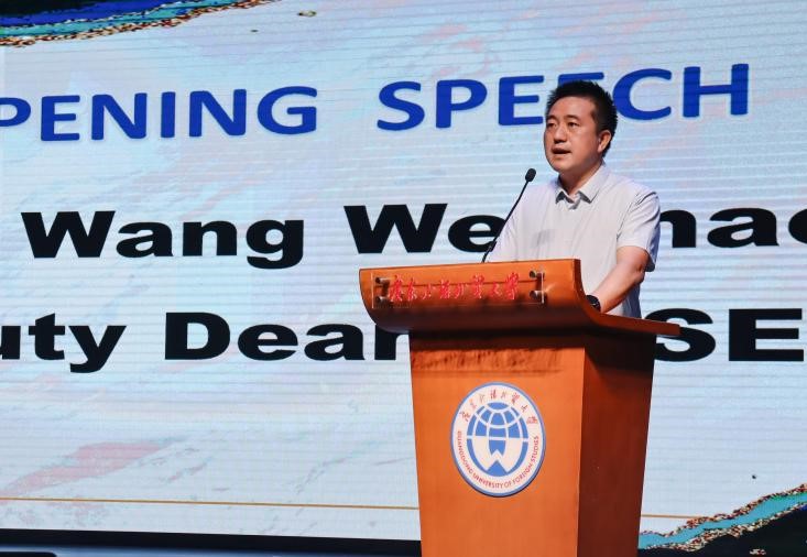 比赛伊始,汪谓超副院长发表热情洋溢的致辞,他将赛事喻为商英学子“全球商业发声的第一步”。以自身经历激励选手,提出“敢言、求真”两大成功的原则,并给出四点建议:拥抱独特性、视挑战为机遇、终身学习、勤于实践。他强调“与优秀者同行”的重要性,为赛事注入满满的激情与斗志。