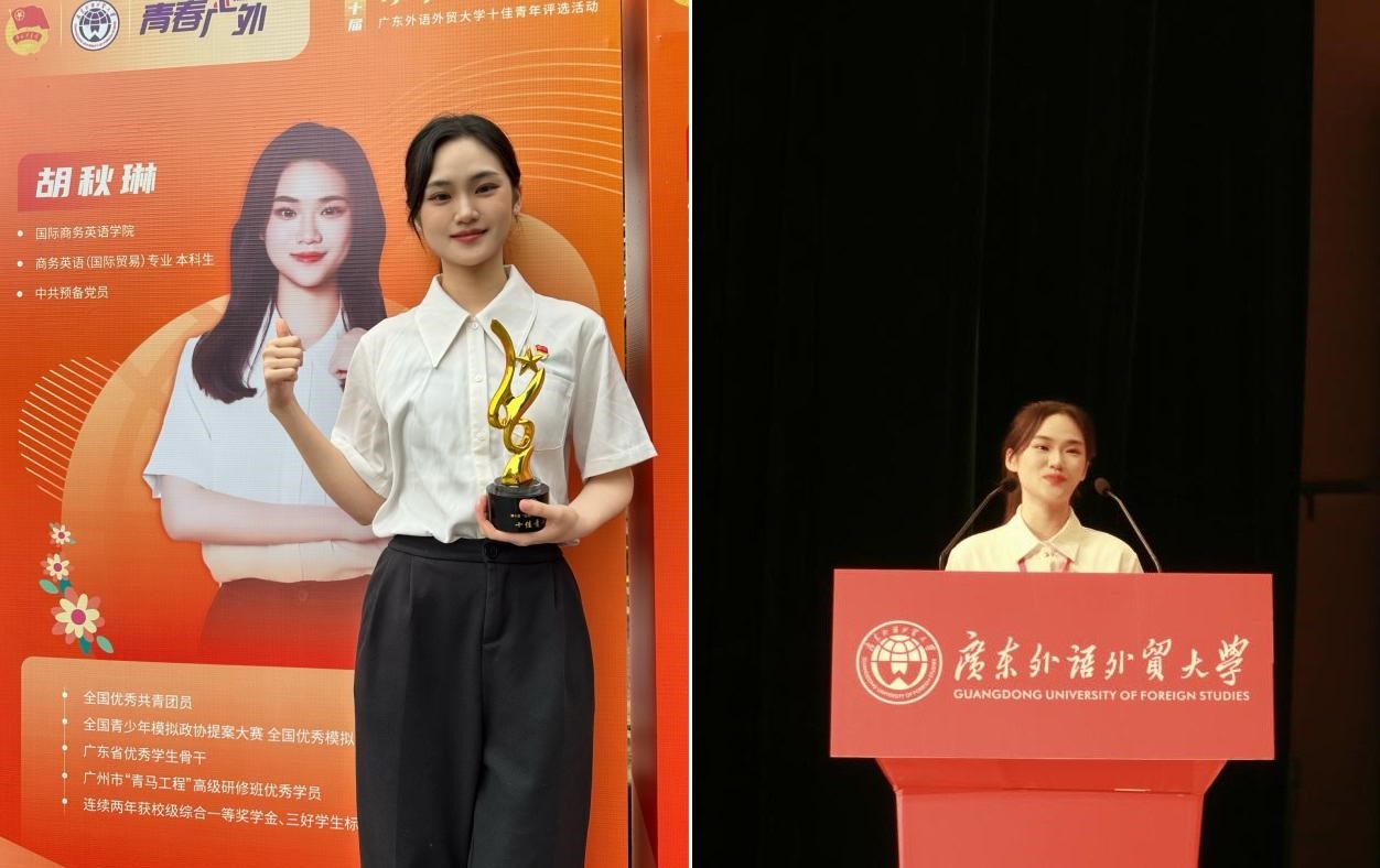 永利官网学子胡秋琳获评2025广外“十佳青年”