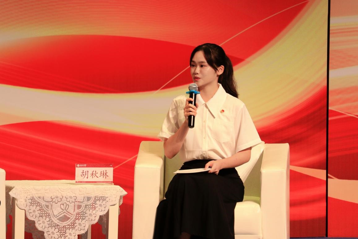 胡秋琳,中共预备党员,商务英语(国际贸易)2201班,专业成绩优异,学生工作经验、宣讲经验丰富,曾担任校学生会主席团成员、校青马班班长等十余项任职,曾参训省市校青马工程,从青马学员成长为资深志愿者,累计宣讲线上线下覆盖人数超30万。