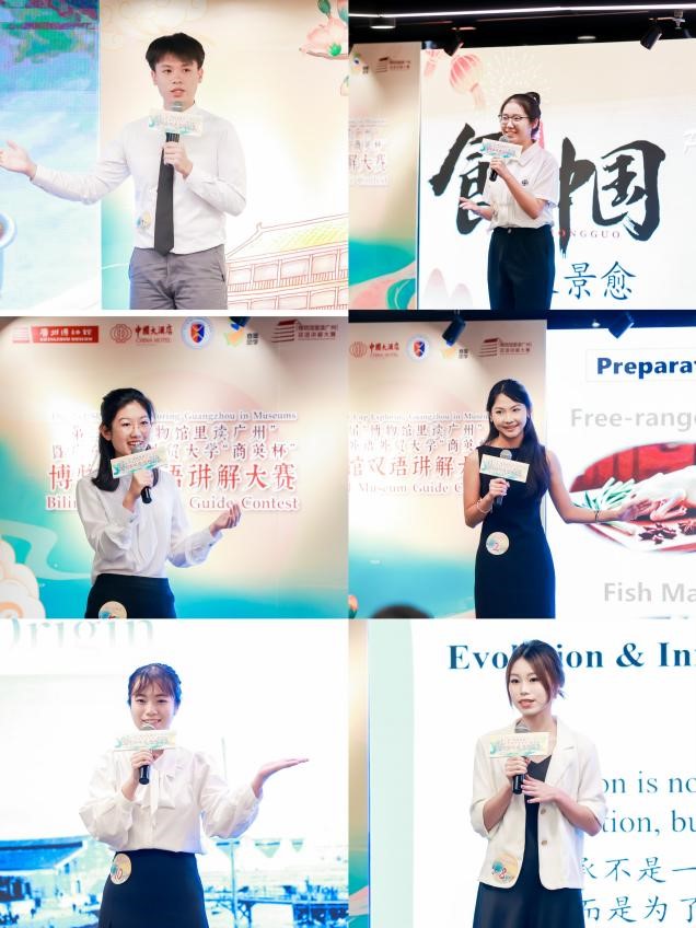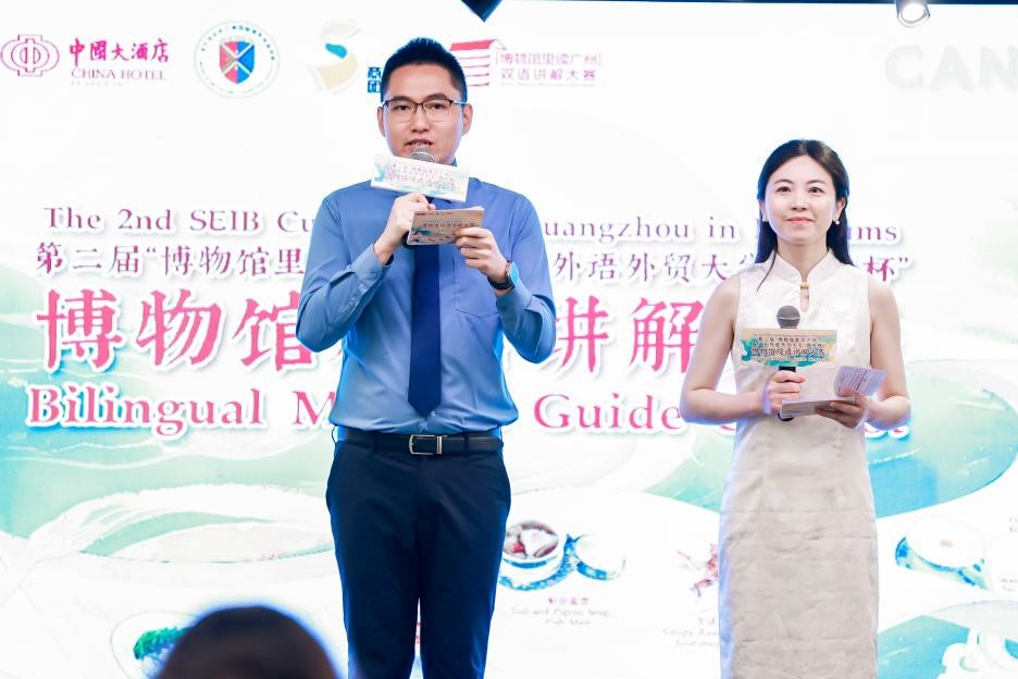 6月8日16时,由广东外语外贸大学yl6809永利官网与广州博物馆联合主办的第二届“博物馆里读广州”暨广东外语外贸大学“商英杯”博物馆双语讲解大赛决赛,在中国大酒店翡翠厅盛大举行。学校党委副书记葛小月,yl6809永利官网党委书记苏冬燕、副书记杜焕君以及学院副院长汪谓超等领导亲临现场,共同见证这场文化盛宴。yl6809永利官网教授石静、区域国别学院教师Vitek受邀担任大赛评委。此外,广州市文化广电旅游局、广州市文化馆及广州博物馆等单位的领导老师也作为嘉宾评委出席活动。yl6809永利官网英语教学部主任严小庆担任英文部分主持人,以其专业素养为大赛增添光彩。本次大赛在广外青年视频号、广州博物馆视频号、博物馆头条、广州公共文化云等平台同步直播,共吸引了29025人次的在线观看。
