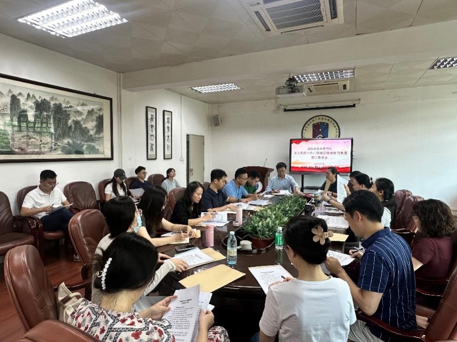 苏冬燕带领与会人员逐一研读《贯彻落实中央八项规定精神应知应会100条》,并结合学院工作实际进行提醒。她强调,要深学细悟习近平总书记关于加强党的作风建设的重要论述,深刻汲取违反中央八项规定及其实施细则精神典型案例的沉痛教训,切实增强纪律意识和规矩意识,持续改进和加强学院党的作风建设,以实际行动坚定拥护“两个确立”、坚决做到“两个维护”。要结合学院工作实际推动深入贯彻中央八项规定精神学习教育走深走实,将学习成果转化为履职尽责、担当作为的实际行动,以优良作风为学院高质量建设发展提供坚强保障。