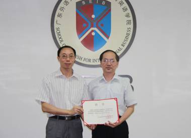 郭桂杭院长代表学院对叶港秘书长(教授)的到来表示热烈的欢迎,并向叶秘书长颁发客座教授聘书。