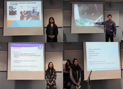本次格拉斯哥卡利多尼安大学夏令营正式开营从8月18日开始,为期两周,学生们在交流学习过程中,分别在社会科学、新闻媒体技术应用、法律、经济、会计学、风险学、商务管理等方面进行课程学习,同时参观了当地大学的新闻制作中心、时装设计工厂、啤酒厂并与当地学生会团体进行交流,同时还参观了爱丁堡等主要苏格兰城市。访学结束之时,8位同学做了一场以“英国所见所闻所感”为题的汇报演讲,同学们纷纷表示在英格兰、苏格兰等地更深入的了解英国的历史、经济、文化与民族风俗,将国内学过的课本知识运用到实践中去,对今后的商务英语方面专业知识的掌握有很大的帮助。同学们的流利精彩的演讲获得当地老师的一致好评。
