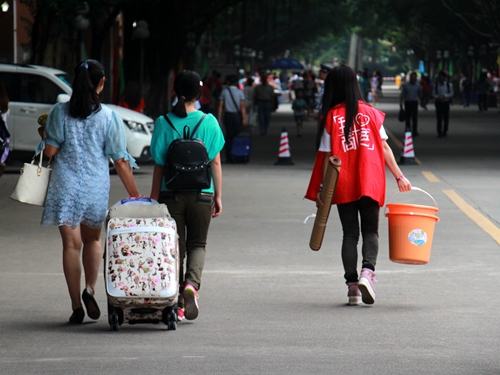 在今年的迎新工作中,yl6809永利官网继续推行多项人性化举措。报到处、绿色通道、户籍办理、军训服装发放处、出国生报到处等标志醒目有序。校道上身穿“商英岁月”字样院服学生志愿者们热情地为新生和家长指路,甚至细心地帮助新生提行李并带到新生注册处,即便是正午的烈日也并不影响他们的志愿服务工作,一直微笑接待学生与家长,展现出商英人良好的精神风貌。在各位领导的指示与安排下,辅导员与志愿者的努力下,迎新活动有条不紊地进行。