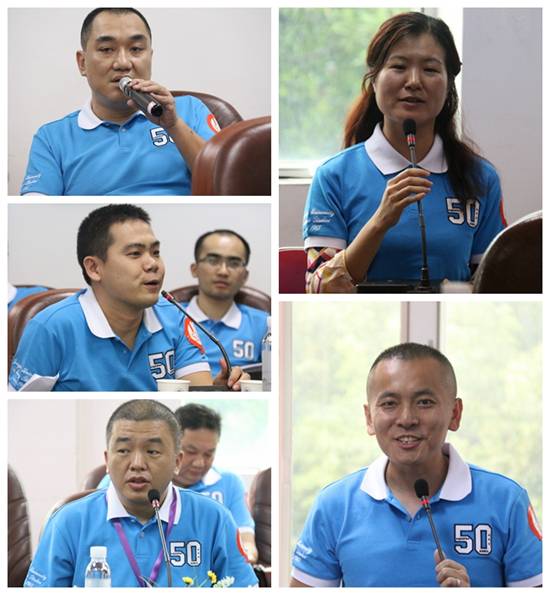 对于如何将校友与学生联系起来,充分利用校友资源,校友陈辽瑞提供了自己的建议:首先资金方面,各校友可以结合自己企业项目上的优势、做企业骨干的经验,给刚成立的公司贡献一份力量,在这个平台上发表观点、进行沟通;第二是对实习就业方面,他呼吁理事们尽量公开公司信息,方便学生和其他校友查看和联系来往。校友梁峰把专业知识和实践结合起来,提到校友可以回校开讲座、论坛、分享会,分享自己的经验,实现课堂教学。96级校友王灿建议在会计方面的学习要注重实践,贴近实践,可以真正走进企业去学习。校友黄伟新自豪说起自己是学校的第一届学生,后来更是商英的老师,他分享了自己建校时的感受和经历,他希望学校人才培养能达到更高层次,要做到开门办学,勇于创新,敢于接受别人的批评建议、吸收新的知识,更重要的是要解放思想,实事求是;求真务实,扬长避短!