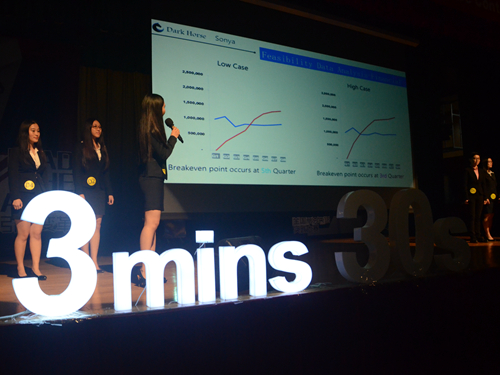 在四支队伍的精彩陈述后,数位歌手与模特队的展示,以及精心准备的游戏环节也让现场活跃起来。本次大赛有幸邀请优秀校友陈辽瑞担任评委嘉宾,他充分肯定了各组的努力,并对一些队伍加以褒奖。同时,点评中也指出了各组的不足之处,并从演示文稿的制作,发音,演讲内容结构,现场表现等方面做出了指导。