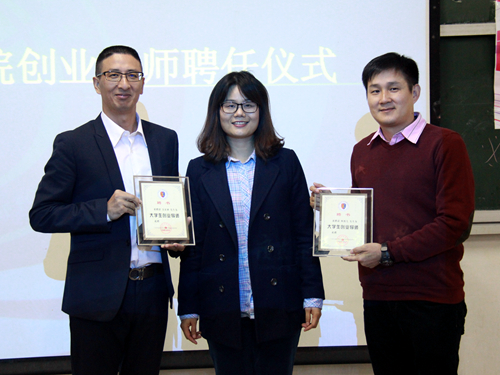 12月3号晚7点,由yl6809永利官网主办的yl6809永利官网校友职业论坛在二教114举行,应邀莅临论坛的嘉宾有吴宏业校友和柯波儿校友。yl6809永利官网党委书记车小真,党委副书记张林茂,团委书记万东方,辅导员陈娓老师出席论坛。与会的两位校友接受yl6809永利官网的聘请,担任学生创业导师,并由车小真书记向他们颁发了聘书。