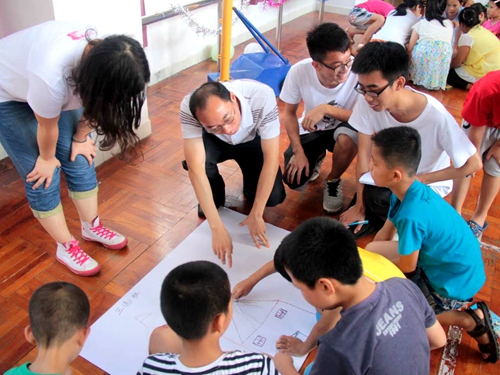郭院长慰问“三下乡”队伍并指导小朋友做手工