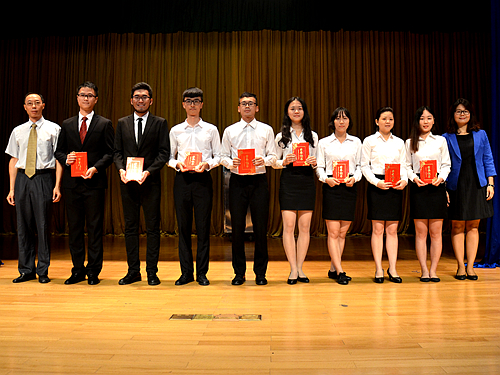 在开场视频后,学院首先介绍了2015—2016学年的优秀学生代表。为激励先进,鼓励进步,郭桂杭和车小真为学生代表颁发证书。