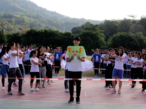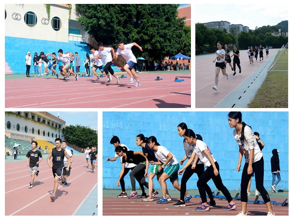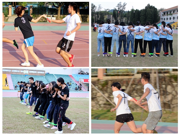 下午,4*100接力赛和多人多足迎来了本次运动会的高潮,操场上聚集了更多观众。接力赛运动员的每一次接棒,每一次冲刺,都伴随着场上观众响亮的呐喊加油声。多人多足是今年院运会新增设的比赛项目,考验的是同学之间的团体合作。队员们手搭手,喊着口号,并随着口号踏着整齐的步伐,齐头并进,快而不乱。尽管有些班级在刚开始的时候没有找到统一的步调,但他们都努力进行调整,争取发挥出自己最好的水平。观赛同学的加油呐喊声更是让队员激情高涨,斗志昂扬,展现了商英学子的活力四射和团结友爱。