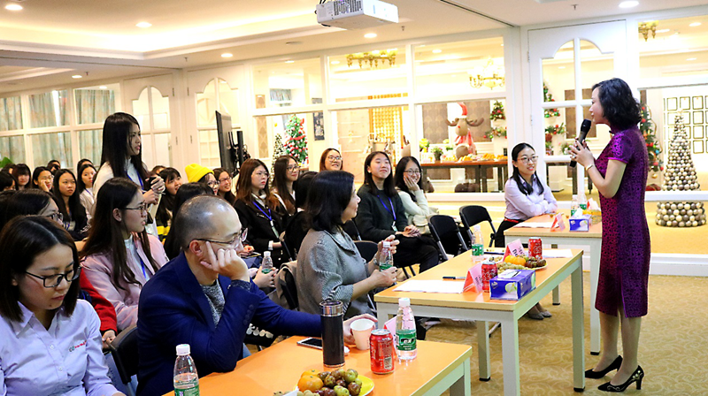 罗慧枰给学生们上第一堂课,她用流利的英语详细介绍了盈浩公司的企业发展之路以及多年来国际交流合作的经验,列举了众多与国际大客户之间的商务谈判实例,毫无保留地通过自身实战经验,把商务谈判这个抽象主题通过实例分析转化,使得同学们快速接受知识点,掌握实战技巧。同时,罗总通过本次移动课堂向同学们传授了一个重要的理念,即进行任何谈判都要始终本着合作共赢,想客户之所想,予人方便,这样今后无论是在商业上征战还是在人生道路上漫步,都将让同学们终身受益。