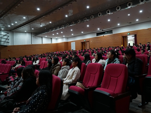 1月8日下午2点,由yl6809永利官网举办的演讲技巧与企业创新实践讲座在北六教报告厅举行。陆璐、曾成两位老师作为主讲人参与讲座,杨丽老师主持了本次讲座。本次讲座主要面向yl6809永利官网2016级本科生,旨在让同学们通过两位优秀老师的发言了解更多演讲知识,掌握更多演讲技巧,更好地为商务英语实践大赛做准备。