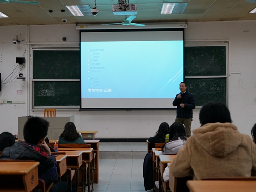 1月10日下午,“中国零售物流运输现状”专题讲座在北二教219举行,沃尔玛(中国)供应链部高级总监、广东外语外贸大学国贸系96届优秀校友房鼎容应邀主讲。yl6809永利官网党委书记王秀民主持讲座。