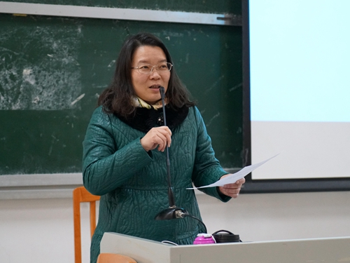 王秀民对她的学生房鼎容返校表示欢迎,并向在场学生做了简要介绍。房鼎容1996年毕业于我校国贸系,是荣获ECR个人突出贡献奖的资深供应链专家,对中外物流状况了解透彻。王秀民希望同学们能在本次讲座中有所收获、有所启发,期待同学们在不久的将来也能回校交流分享。