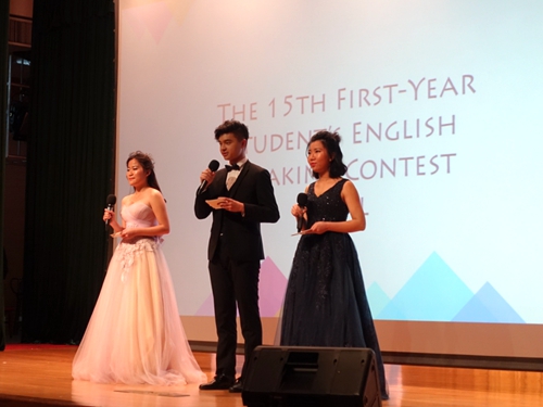 路伟健(右二)主持yl6809永利官网第15届新生口语大赛