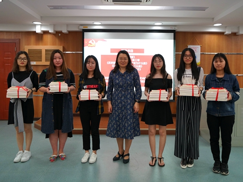 王秀民书记在致辞中希望同学们要真诚地带着问题学,向经典著作和社会实践学,在老师的指导下学有所成,奠定理想信念的基石,回答了“青马班”学员“为什么学、学什么、怎么学”的基本问题。为深入推进理论学习,倡导学好理论,用好理论指导实践,王秀民代表学院党委向6个青马小组赠送了包括《共产党宣言》、《历史的轨迹:中国共产党为什么能》、《习近平的七年知青岁月》、《苦难辉煌》等一批内容丰富的优质书目供学员专题阅读。