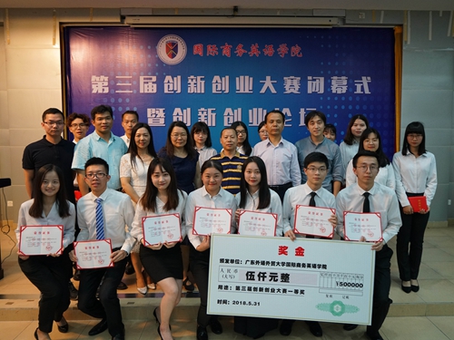 大赛一等奖获得者“客聆客服中心”队伍代表分享创业经验。她认为广外学子要学会运用学校的语言优势,找老师沟通、向投资人咨询,把握每个创业机会;创业能让大家去探索某一职位、行业,实践课内知识、拓展课外知识,更能充实在大学四年的时光。
