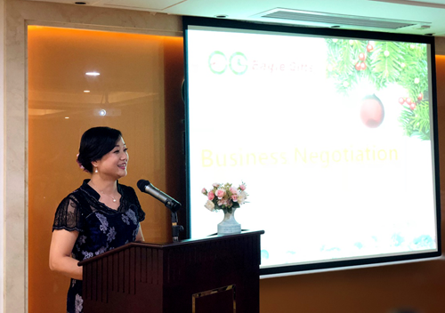 罗慧枰总经理英语开讲主题为国际商务谈判的课程,她毫无保留地分享自身多年与国际客户之间的商务谈判实例,与书本理论有机结合,让同学们更加清晰明了地理解商务谈判的技巧及知识点。罗总指出在商务谈判中要获得成功,必须坚持合作共赢的理念,把客户利益放在首位;强调要立事先成人,要做一个有正确价值观的人,树立利他精神,要记住让自己受益的最好方法就是让别人受益,这才能展望更好的未来,这不仅对商业发展而且对往后的人生道路,都将会终身受用。