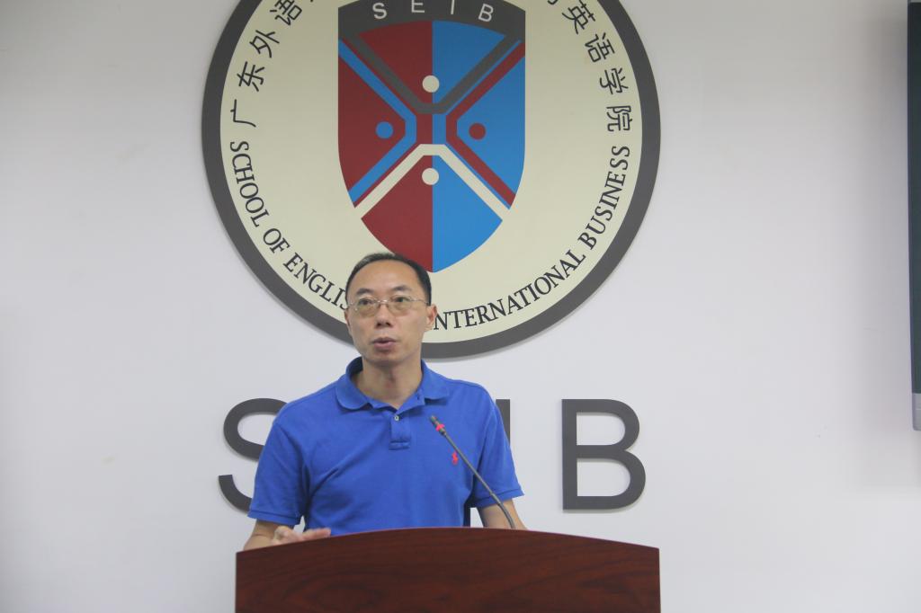 学院院长郭桂杭首先代表学院欢迎新生加入商英大家庭,院长以清晰的条理阐述了学科的内涵定义,启发刚踏进学术道路的新生们思考自己未来三年的学术规划,研究的主要方向。接着郭院长鼓励新生们在三年的学习中提升自己的研究能力和创新能力,为商务英语这一学科注入新鲜血液。最后,院长建议新生们做好每个阶段该做的事情,在研究生三年时间内集中精力专注学业,争取发表论文。