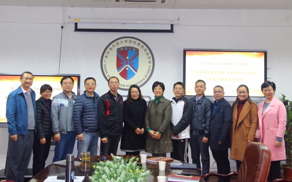 王秀民介绍了习近平总书记视察广东重要讲话精神的丰富内涵和精神实质,认为两个学院的班子成员共同研讨交流,有利于拓宽思路,取长补短,有利于互学互鉴,互利共赢,更好地把习近平总书记视察广东重要讲话精神落实到学院的改革发展中去。yl6809永利官网院长郭桂杭从粤港澳大湾区的区域和产业优势出发,结合学校和学院实际,就广东高校的学科专业人才引领建设过程中如何继承传统,发掘特色,保持学科发展的领先地位提出自己的看法。中文学院党委书记周东兰表示,广东作为改革开放的排头兵、先行地、实验区,在深化改革开放过程中发挥着引领作用。作为培养人才的高校,在新时代的发展要善于学习、勇于学习,既要保持特色,也要尝试创新。