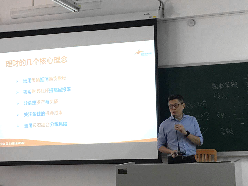 同日下午,深圳妈妈资本集团执行总裁、妈妈金融学院执行院长肖建斌在北六教B214为yl6809永利官网国商系本科生做了题为“新经济常态下年轻人的财富价值观”的专题讲座。作为资深的金融业界人士和包括中山大学岭南学院在内的多家教育或培训机构导师和嘉宾,肖总以引导年轻人在新时代下树立正确的财富价值观为目的,分析了新经济周期的特征,介绍个人及家庭理财的核心概念和产品选择,探讨财富管理的终极目标—如何提高幸福感。国际商务系系主任黄晓艳主持讲座。