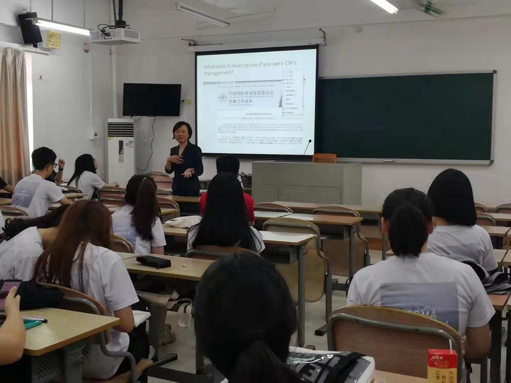 3日下午,华徳会计师事务所创始合伙人、ACCA(全球)执委、香港社会创投基金董事蔡懿德给2017、2018级CGMA全体同学带来关于行业机遇的分享,她概述了公司的工作状态和发展前景,简析国际会计环境并解答同学们提出的有关会计收入等问题。本场活动由国际商务系系主任黄晓艳主持。