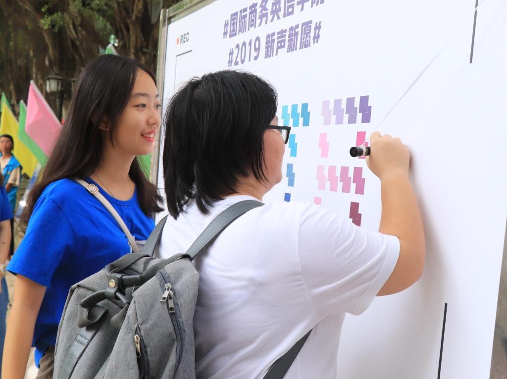 为方便2019级新生快速、有序、高效办理报到手续,yl6809永利官网组织了大批志愿者到广州火车站和校园各个角落,为新生指引路线、搬运行李、答疑解惑,他们热情、周到、细致的服务获得了新生和家长的一致好评,还有商英记者行走校道和宿舍楼对新生进行采访。今年,除了精心制作的路标、立宣以及签名墙之外,永利官网首次在登记点设立便签墙和抽奖盒,商英新生可以在便签墙上写下新学期寄语,也可以通过抽日历的方式参与抽奖,学生和家长的笑容是对学院精心策划最好的肯定。