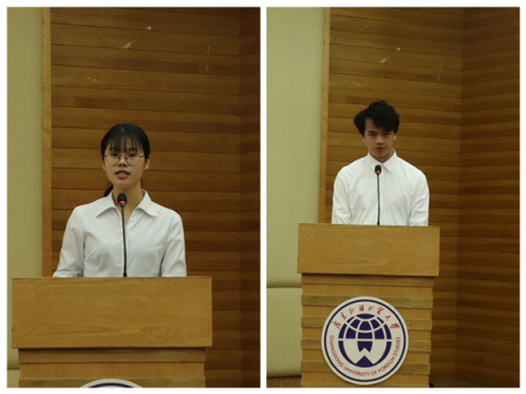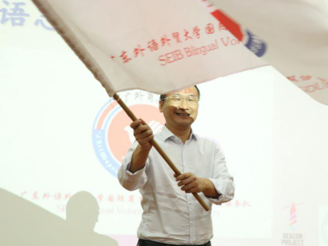 李江为双语志愿服务队授旗,标志着主题为“四时作诗,大爱成歌”的第八届志愿文化节正式拉开序幕。志愿服务队代表周欣雨接受队旗并发表讲话,她表示商英双语服务队将继续以“爱心、责任、进步”为主题,以社会主义核心价值观为依托,以提升志愿者知识技能类、社会交往类、素质拓展类、健康生活类四方面能力为目标,配合校团委组织好大型赛事、会议的志愿服务,展现yl6809永利官网特色。