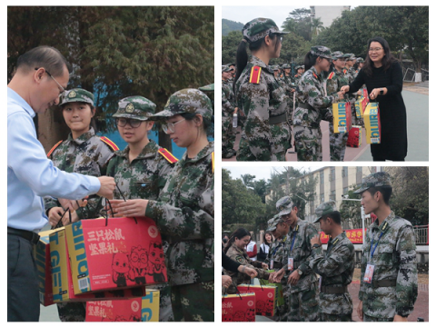 此外,永利官网还为每位教官和受训新生准备了丰富的慰问品。新生们以热烈的掌声与响亮的口号回应了学院的满满温情,并表示在接下来的训练中会加倍努力,以更昂扬的精神面貌,为学院增光添彩。