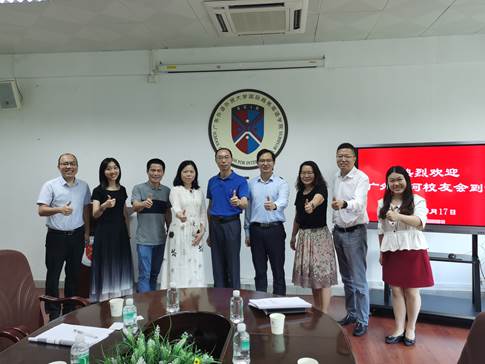 2020年9月17日上午,广外天河校友会一行五人在副会长唐玉涛(90级日语)、赵震峰(01级商英)的带领下到访永利官网,院长郭桂杭、书记王秀民、副书记陈静出席座谈会,双方就学院发展、院企可合作的方向进行了商讨。到访的校友还有秘书长黄崇本(06级营销),校友王征豫(99级商英)、张茵(15级商英),辅导员陈娓、魏煊一同参加会议。