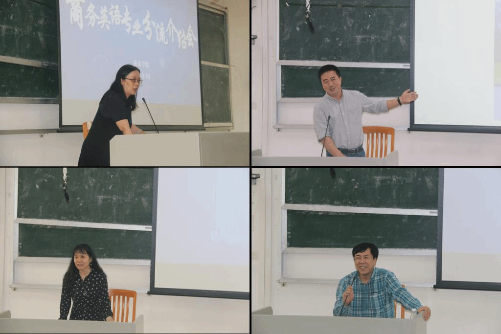 随后,各系主任分别就本专业进行了介绍。商务英语系主任杨丽老师重点介绍了国际商务管理方向的课程设置,指出国际商务管理方向较为全面的课程设置适合培养“通才型”人才;英语教学部主任汪谓超老师对商务英语(国际金融)方向的师资力量、课程架构、学分要求、专业特点、实习项目等进行了全面介绍;经贸英语系主任周瑞琪老师则结合国际贸易的各个实践环节,简要介绍了商务英语(国际贸易)方向培养方案中每门课程的学习内容,深入浅出地呈现出课程设置的内在逻辑。法律英语系主任张新红老师就法律英语系的历史沿革、师资特点、实习基地及实习项目、就业前景等方面也进行了全面介绍,并就学生修读课程提出建议。