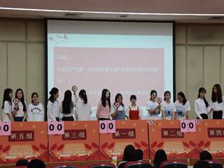 此次比赛内容丰富,涵盖建党初期的历史知识以及社会主义现代化建设新时期等多个时期的重要思想内涵。此外,竞赛方式多样,除了各组抽题回答问题的方式外,还增加了两两PK环节,将比赛推向了白热化阶段。本次比赛的特色环节——第三部分“指点江山”:在该环节中两支队伍需分别为对方选择屏幕上的任意一个方块区域,作答队伍需根据方块所示的图片截图和提示的字数作答。选手们凭借细致的观察与快速的反应,展现了她们扎实的党团史知识功底,让现场观众惊叹不已,连连拍手叫好。