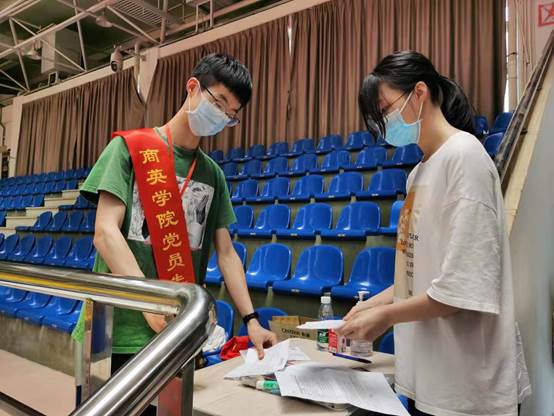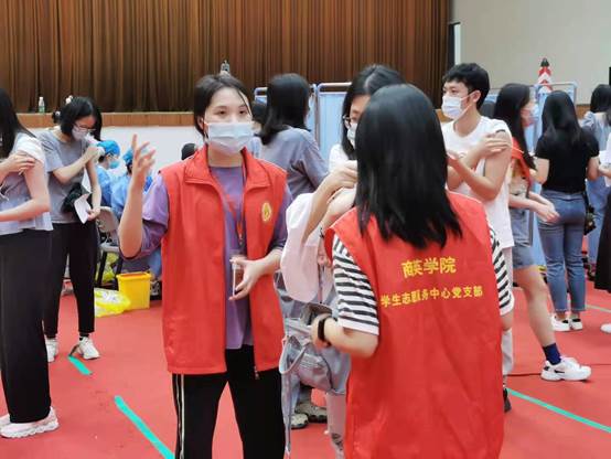 永利官网还设立“党员先锋岗”,组织多名学生党员参与志愿服务,在疫苗接种现场发挥党员先锋模范作用,主动为场内疫苗接种的师生提供帮助。从早上8:00到晚上19:00,永利官网志愿者始终坚守岗位,始终保持专注的服务,充分展示了商英人严谨热情的优良品质。