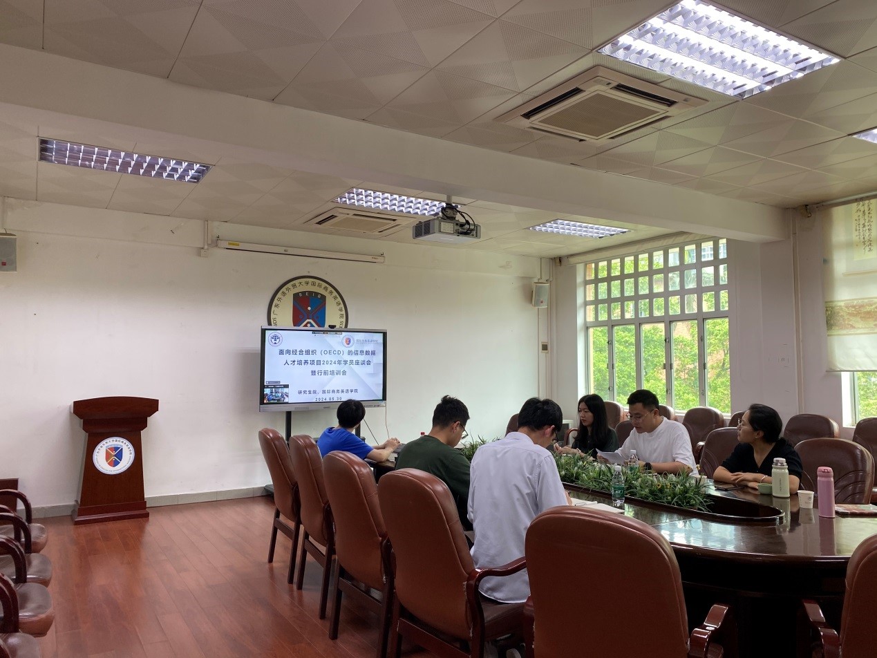 为推进面向经合组织(OECD)的信息数据人才培养项目实施,指导项目第二届学员申请国际组织实习岗位以顺利完成学业,开展项目第三届学员行前教育与培训,5月30日下午,yl6809永利官网在三教318会议室以线上线下相结合的方式召开座谈会。研究生副院长蒋涌教授、yl6809永利官网副院长杨文慧教授出席会议,项目第一届优秀学员陈敏、郑泳涛和吴淑华受邀分享国际组织岗位申请和实习经验。会议由yl6809永利官网国际项目中心韩金彪老师主持,项目第一、二、三届学员参加座谈会。